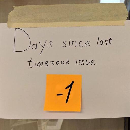 arrow-up12arrow-down1imageDays since last timezone issuelemmy.ml☆ Yσɠƚԋσʂ ☆@lemmy.mlEnglish · 14 days agomessage-square0linkfedilink