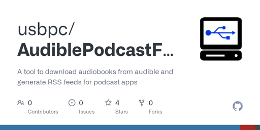 arrow-up15arrow-down1external-linkAudiblePodcastFeed - A tool to download audiobooks from audible and generate RSS feeds for podcast appsplus-squaregithub.comusbpc@programming.devEnglish · 2 days agomessage-square0linkfedilink