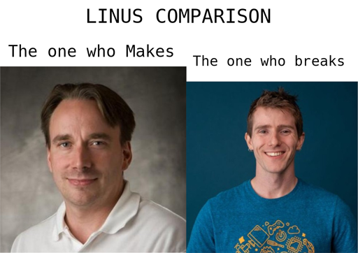 Erik L. Midtsveen 🏴🌈@lemmy.wtf to linuxmemes@lemmy.worldEnglish · 9 days agoLinus Comparisonlemmy.wtfimagemessage-square147linkfedilinkarrow-up1819arrow-down150