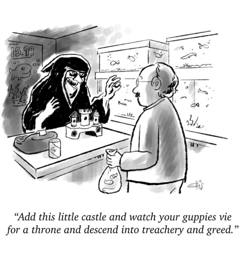 Anyone who has had guppies knows they’re already all about treachery and greed (for food and sex).