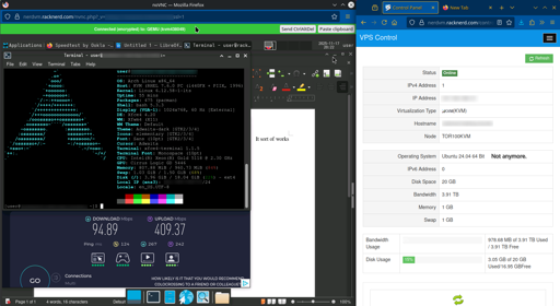 So, the recovery environment has some RAM (but seems to be less than the VPS), and some storage (around 1GiB). The free storage is around 350MiB.