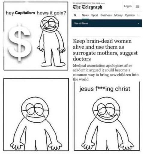 ☆ Yσɠƚԋσʂ ☆@lemmy.ml to Memes@lemmy.mlEnglish · 3 days agoHey capitalism how's it goin?lemmy.mlimagemessage-square48linkfedilinkarrow-up1201arrow-down14