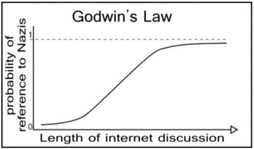 Nowadays there is a corollary that goes “As an online argument goes on, the chances of one or more participants revealing themselves to be Hitler approaches 1”