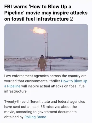 The movie is from 2022: https://en.m.wikipedia.org/wiki/How_to_Blow_Up_a_Pipeline_(film)