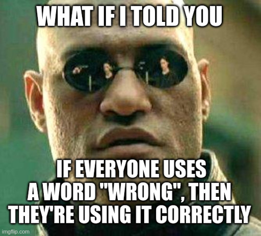 I’m gonna get the shit downvoted out of me for this, but the problem with this idea is that insular communities tend to redefine words and then expect everyone outside their bubble to know their new definition. Doing so also robs the language of a word that served a specific purpose, such as in the case of the word “literally.”