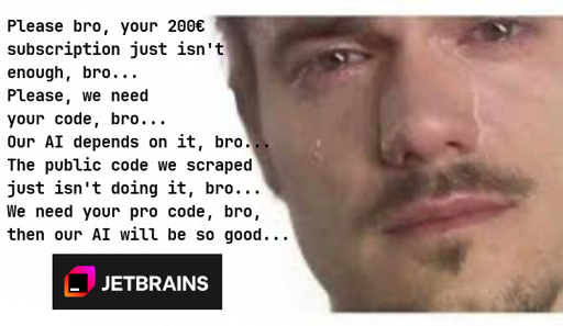 Mikina@programming.dev to Programmer Humor@programming.dev · 1 month agoNew Jetbrains Update Droppedprogramming.devimagemessage-square1linkfedilinkarrow-up10arrow-down10