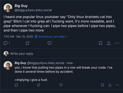 arrow-up1356arrow-down1imagecat posttitle.txt | grep memelemmy.worldalias_qr_rainmaker@lemmy.world to linuxmemes@lemmy.world · 4 days agomessage-square50linkfedilink