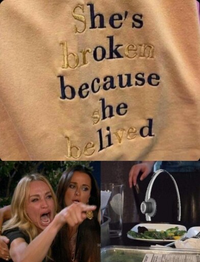 (S)he's (br)ok(en) because (s)he (be)li(ve)d