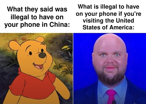 I lived in china for 4 years and Winnie has Def never been outlawed. Chinese censorship is much more sophisticated than “hey, that’s illegal.” There’s not a list of pictures or memes or phrases that if you’re caught with you’ll get a visit from the police. No no no. There are hundreds of thousands of people monitoring social media for the latest “subversive” trends. When a new trend develops that content is blacklisted and just not allowed to be spread. You’ll send your friend a picture and it never shows up on their phone. There’s no indication on your end that it didn’t send or they didn’t get it. You can have this content on your phone, the CCP doesn’t care. They care about it spreading. And you’ll never get in trouble for trying to spread it because the system doesn’t allow it to spread.