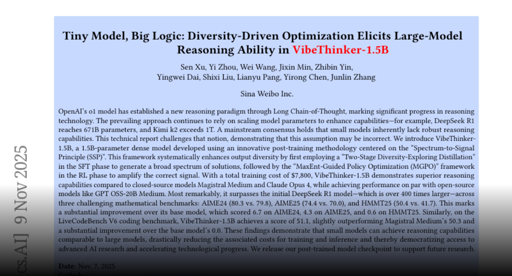 Paper page - Tiny Model, Big Logic: Diversity-Driven Optimization Elicits Large-Model Reasoning Ability in VibeThinker-1.5B