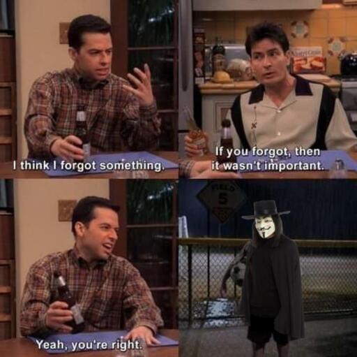 If it wasn’t for this meme, I’d forget to blow up the parliament today. Brb.