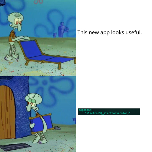 ColdWater@lemmy.ca to linuxmemes@lemmy.world · 1 year agoimagine spending hours of coding, planing just to make it a chromium extension app in disguisedlemmy.caimagemessage-square0linkfedilinkarrow-up10arrow-down10