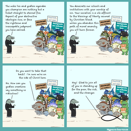 Hypocra Sea is a comic strip poking fun at hypocrisy in a fictional undersea society. Any resemblance to real life is the sign of an active imagination.