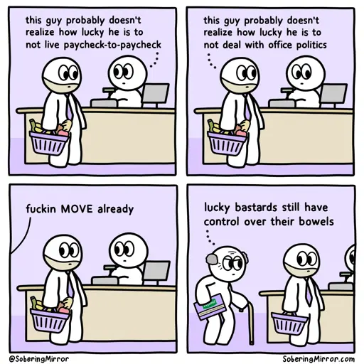 freeboto@lemmy.ca to Comic Strips@lemmy.world · 2 days agoHow lucky you arelemmy.caimagemessage-square13linkfedilinkarrow-up11arrow-down10